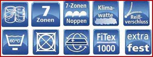Bezug mit hochwertger. feuchbgkeitsregu-lierender und atmungsaktiver Klimawatte versteppt